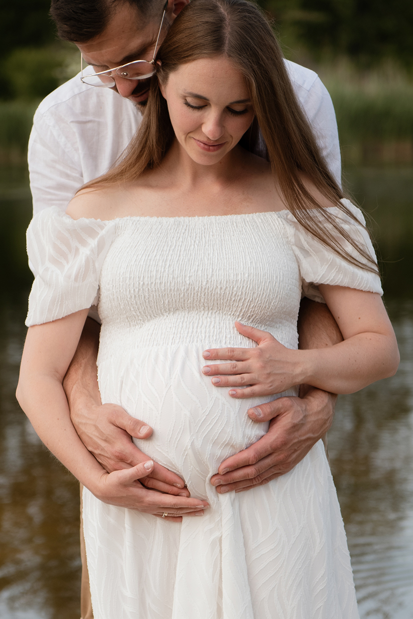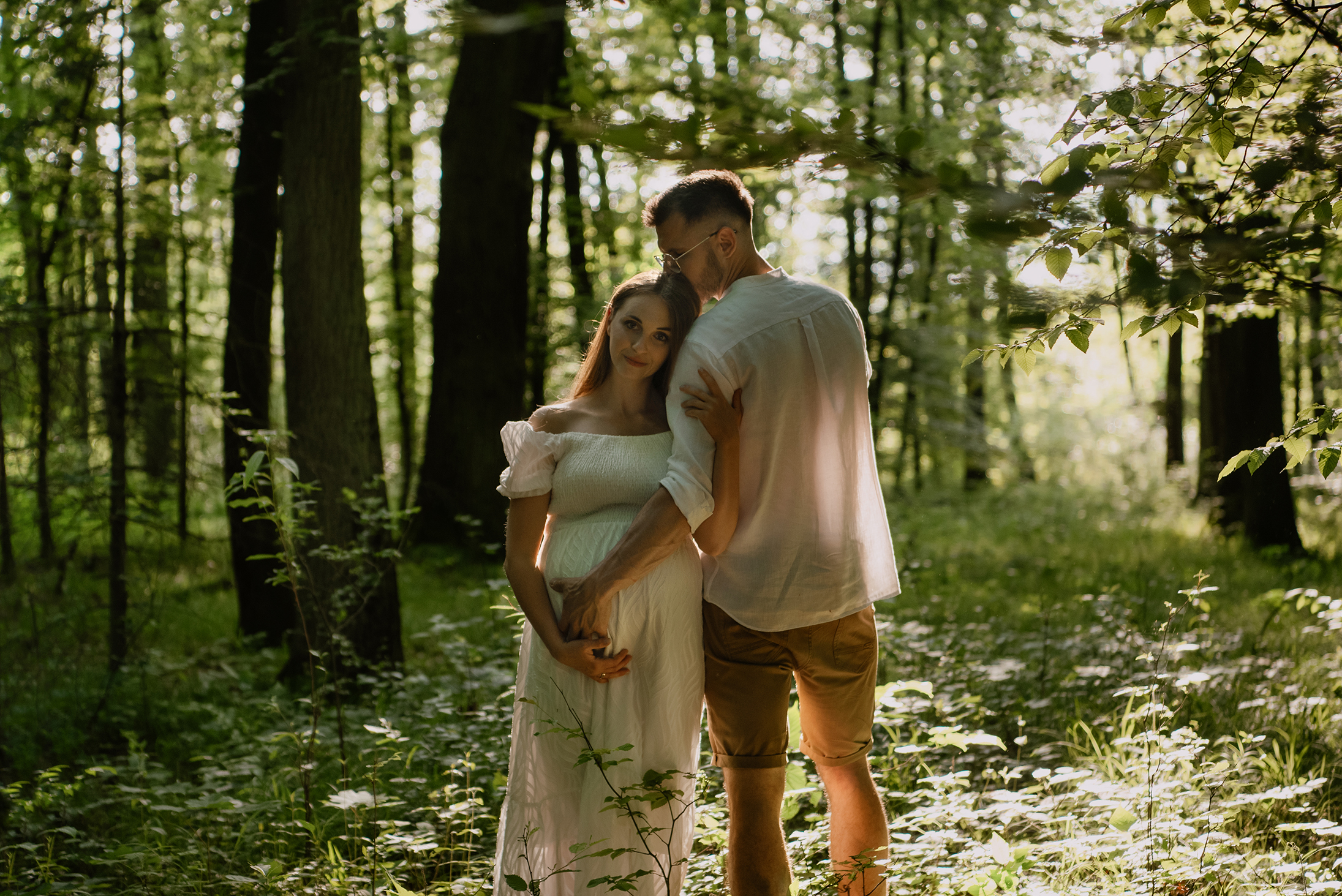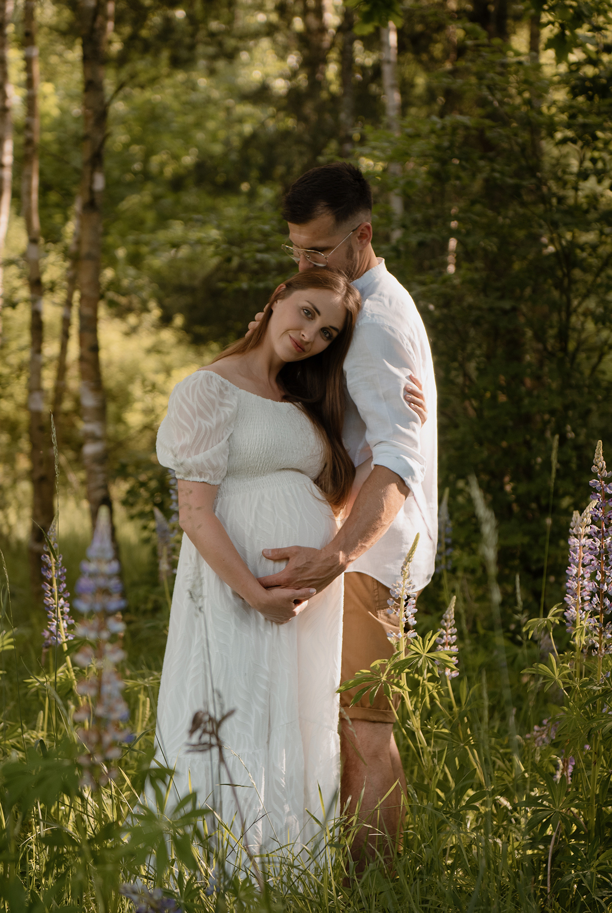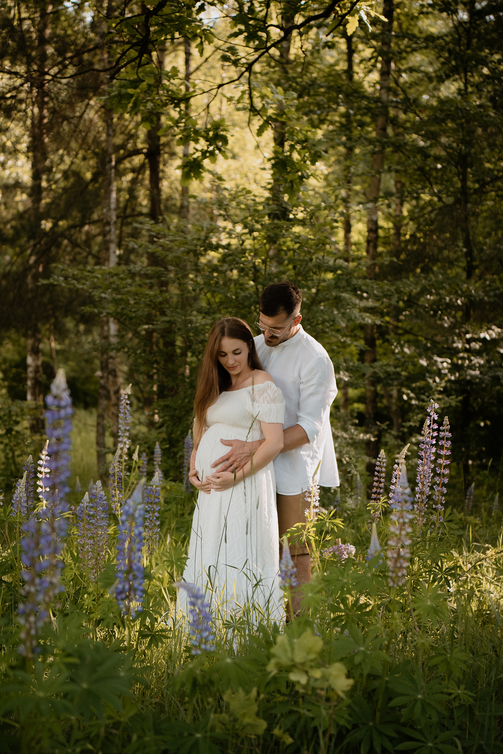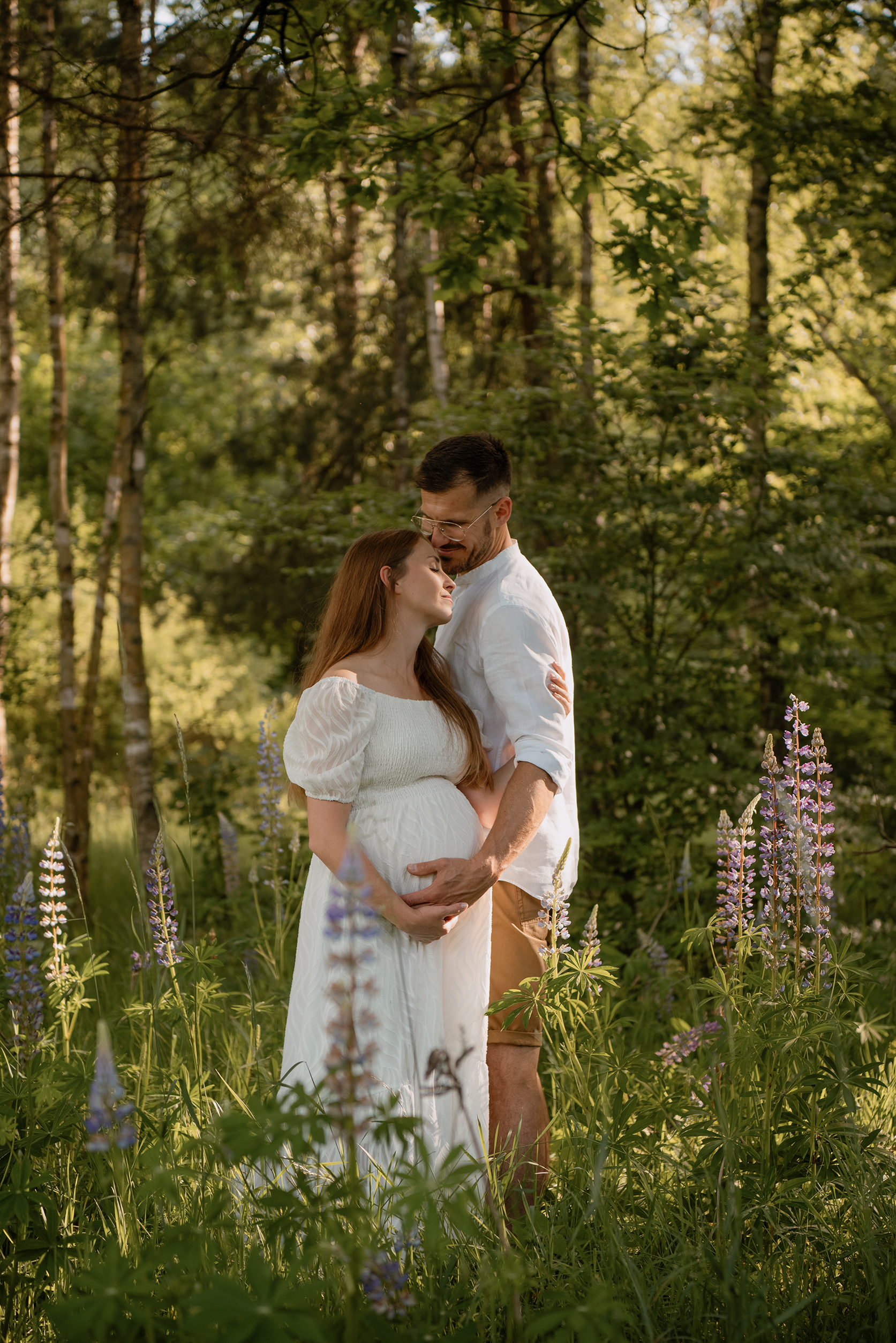 Sesja ciążowa- rodzinna wśród kwiatów i drzew >