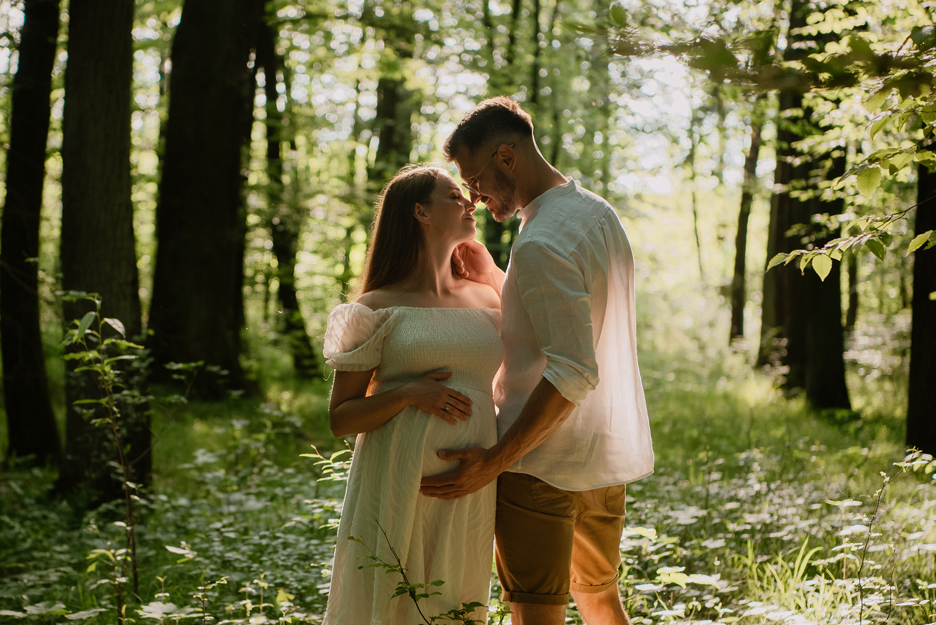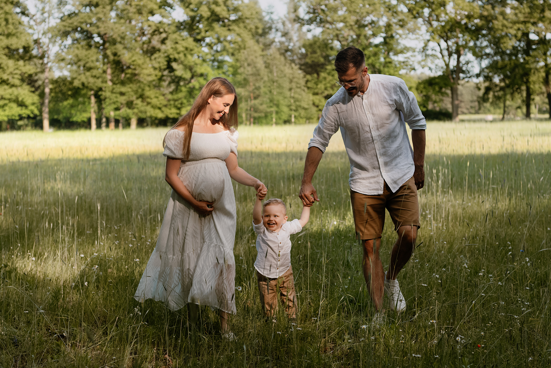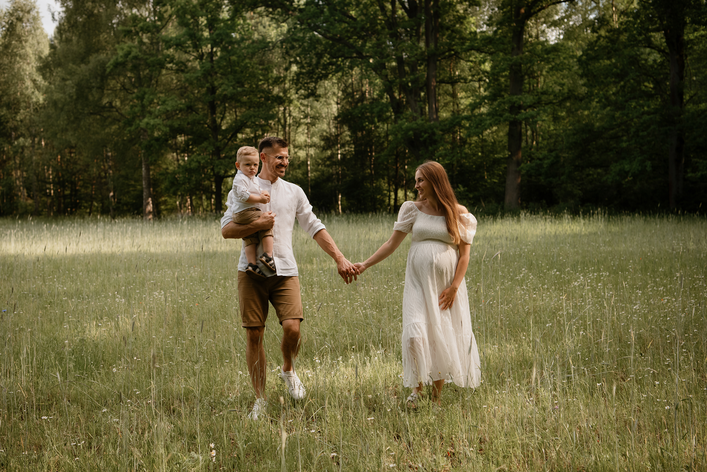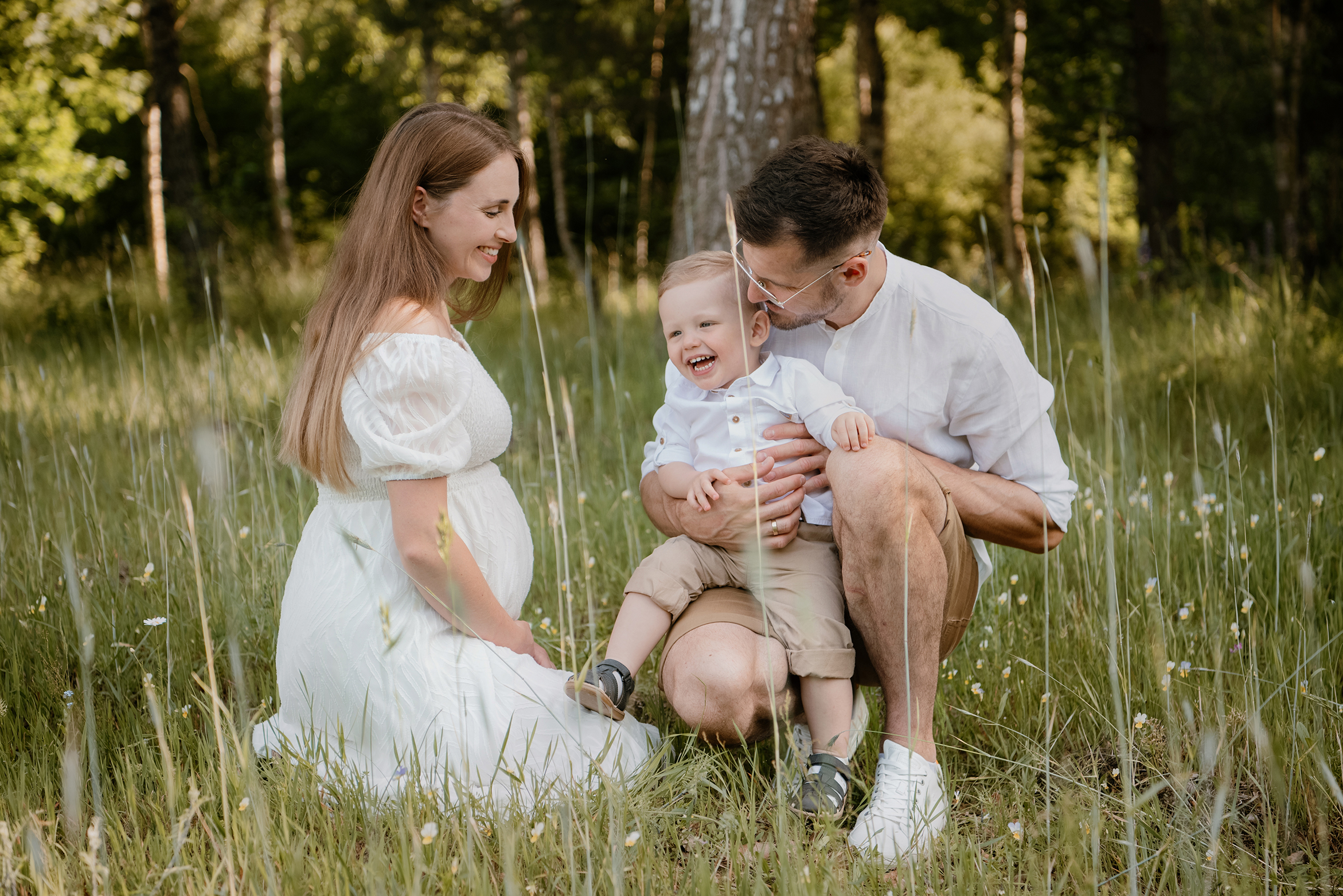 Sesja ciążowa- rodzinna wśród kwiatów i drzew >