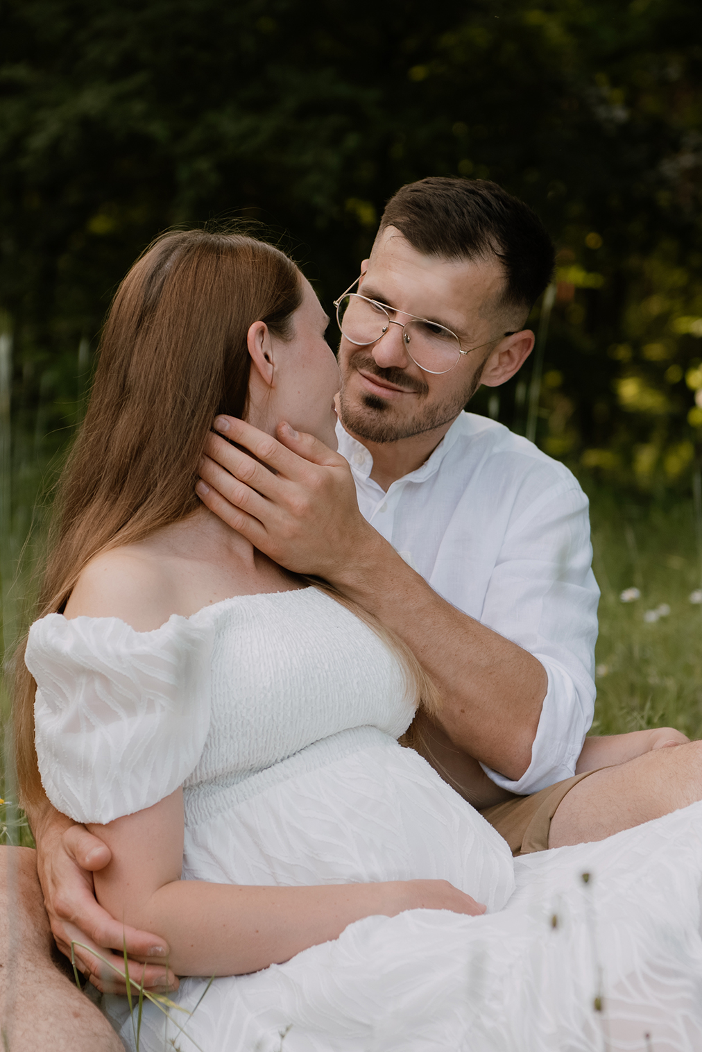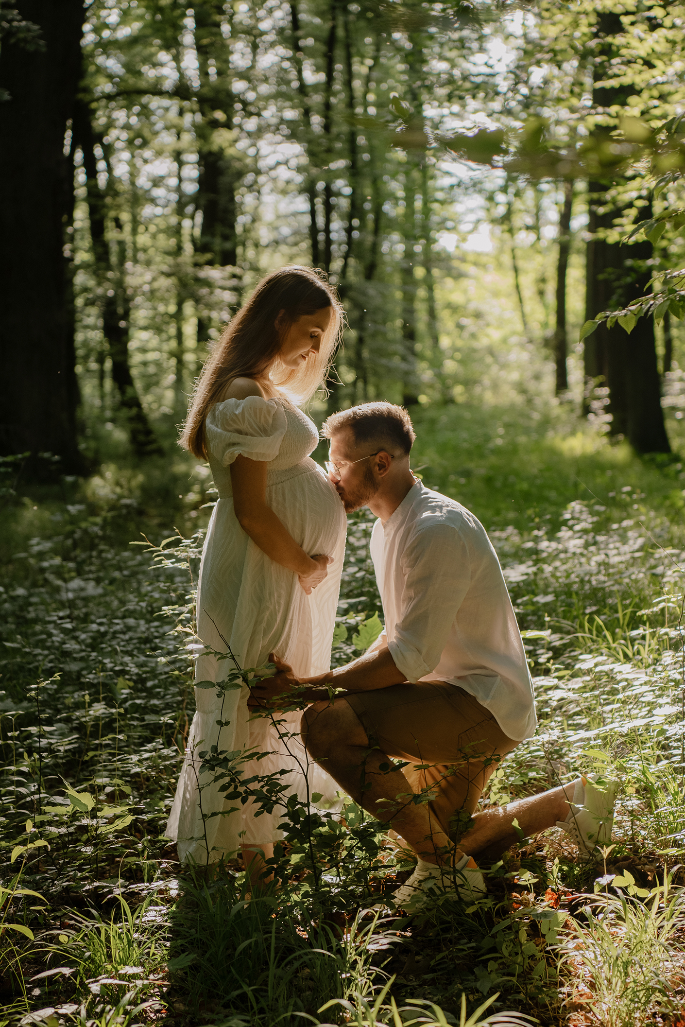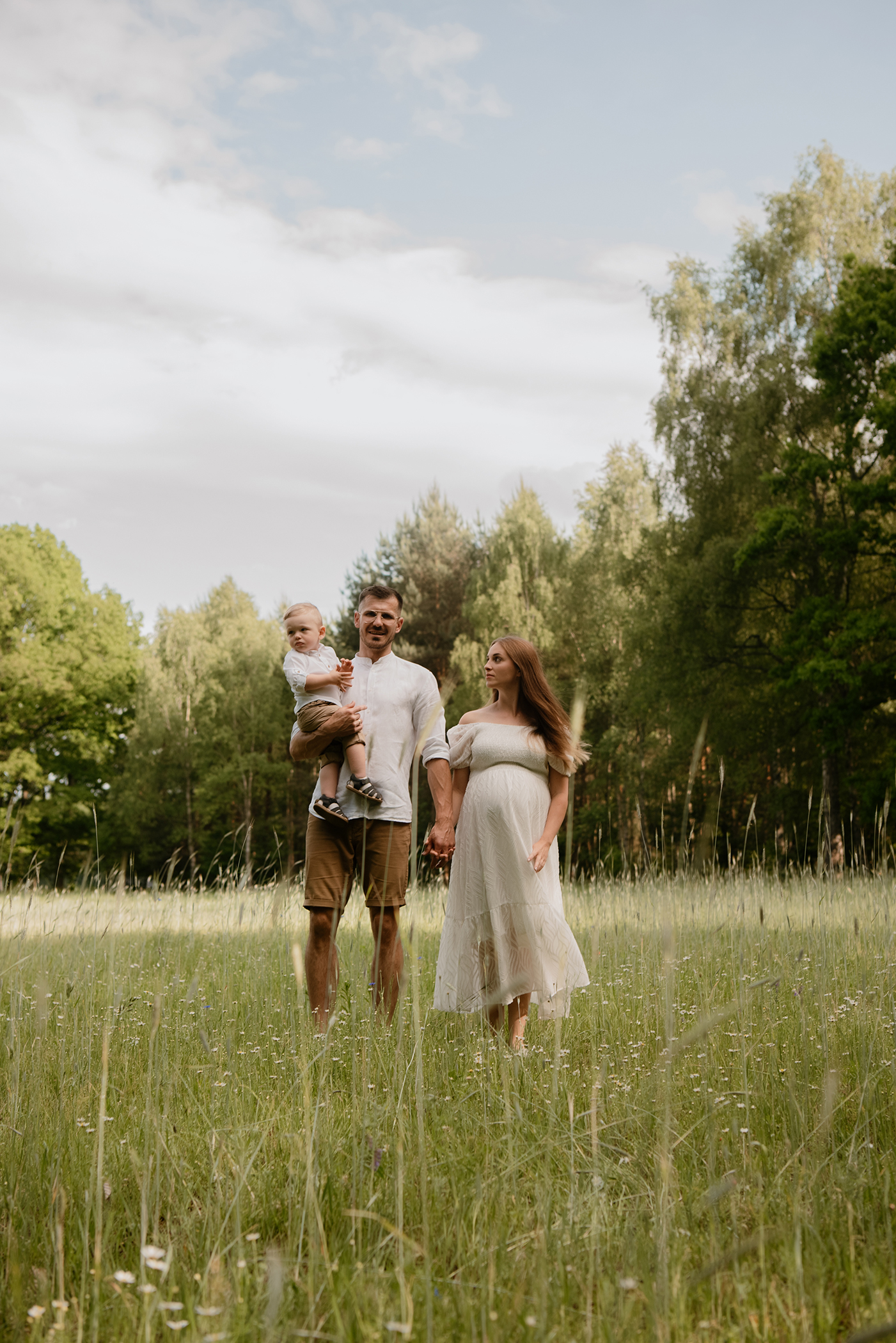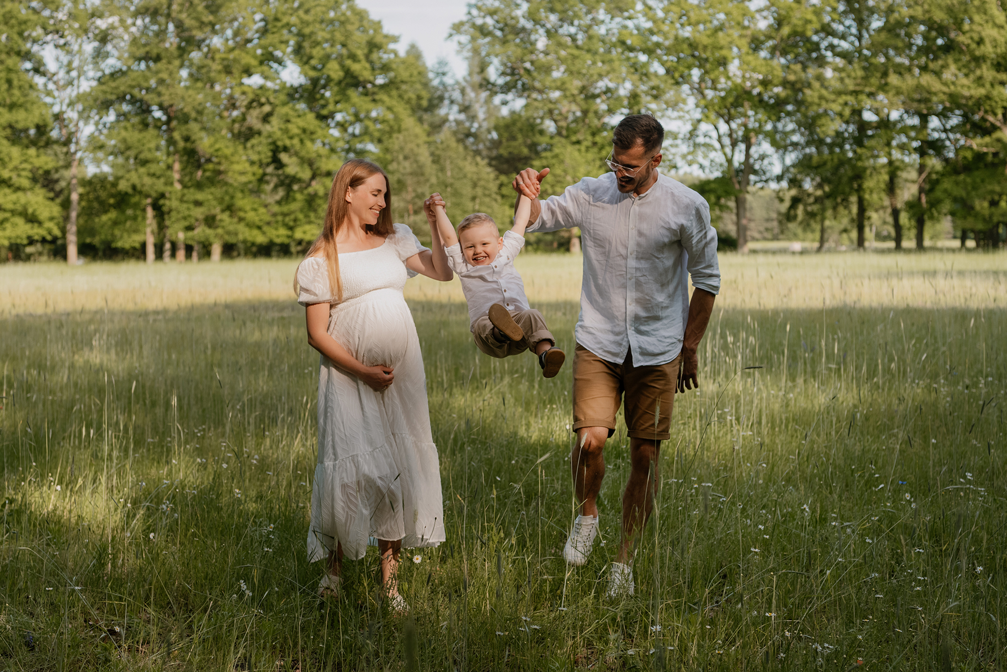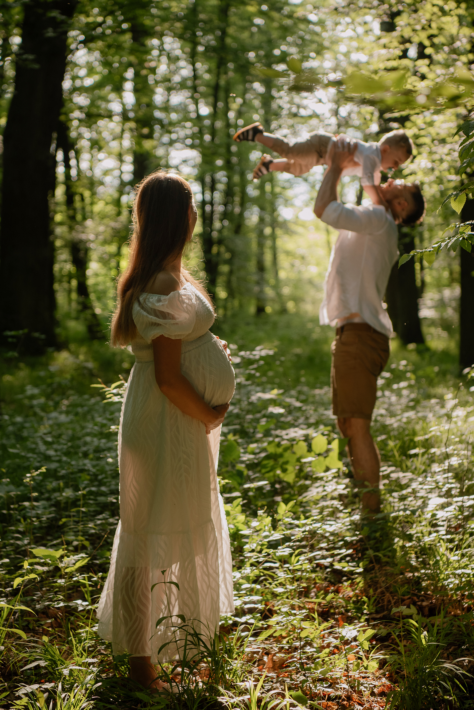 Sesja ciążowa- rodzinna wśród kwiatów i drzew >