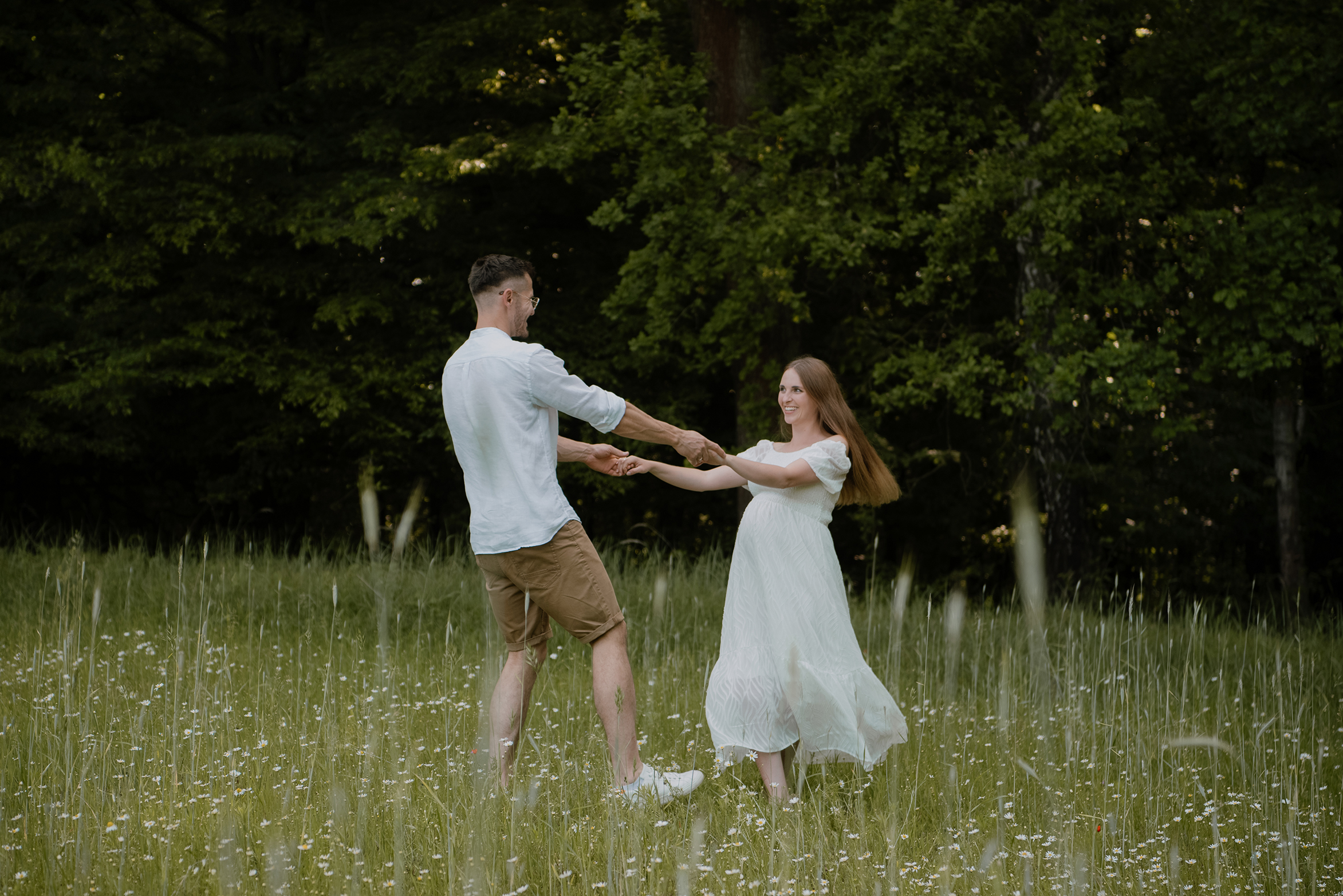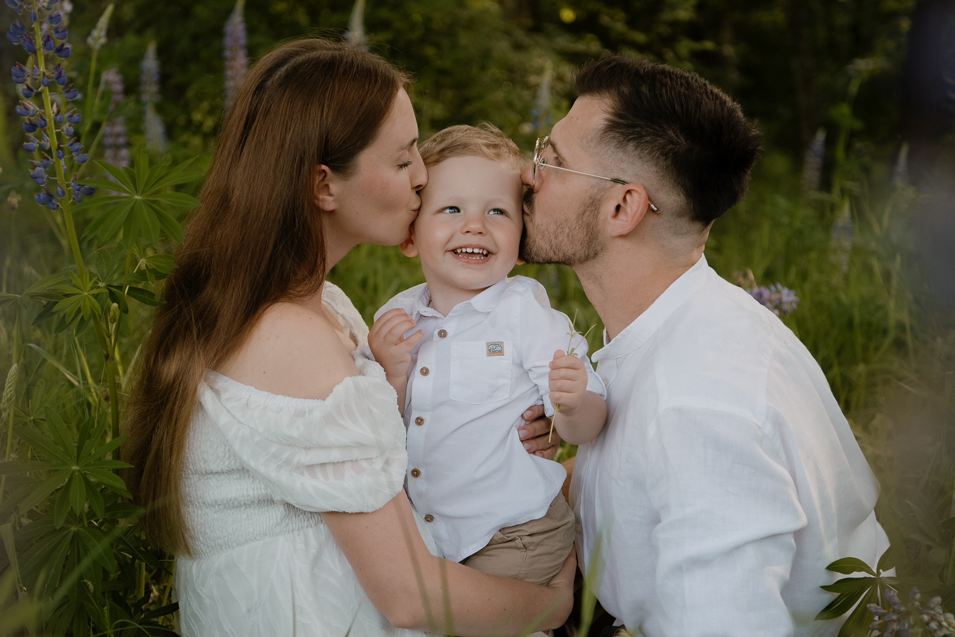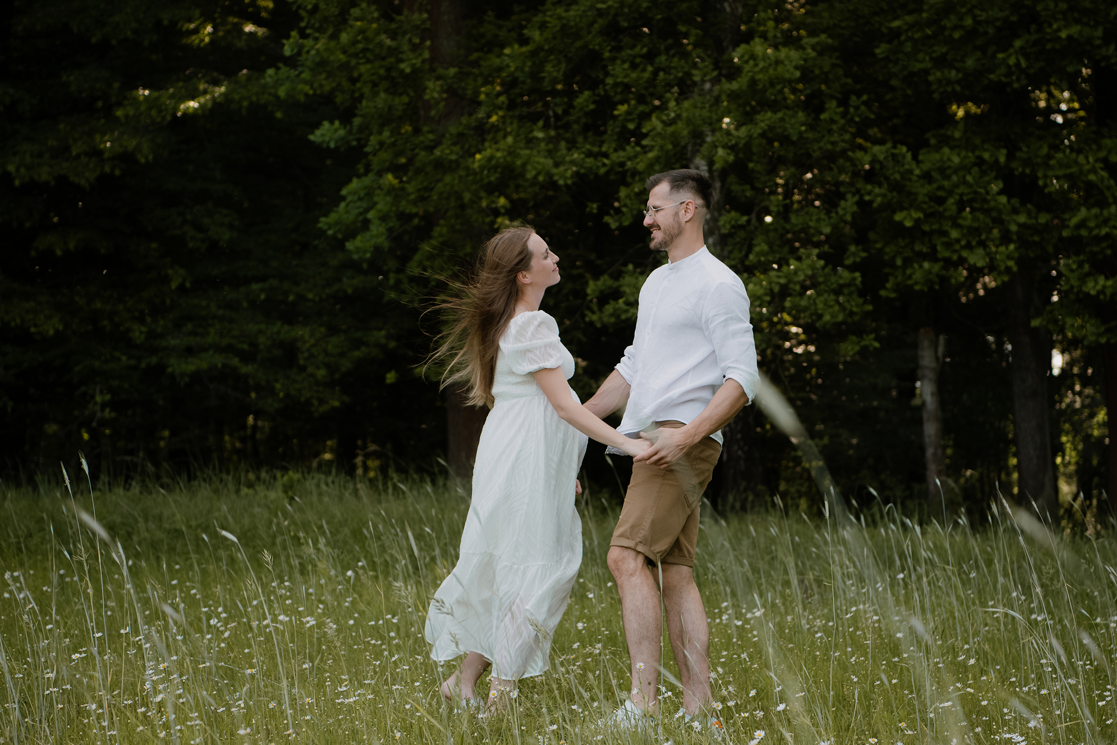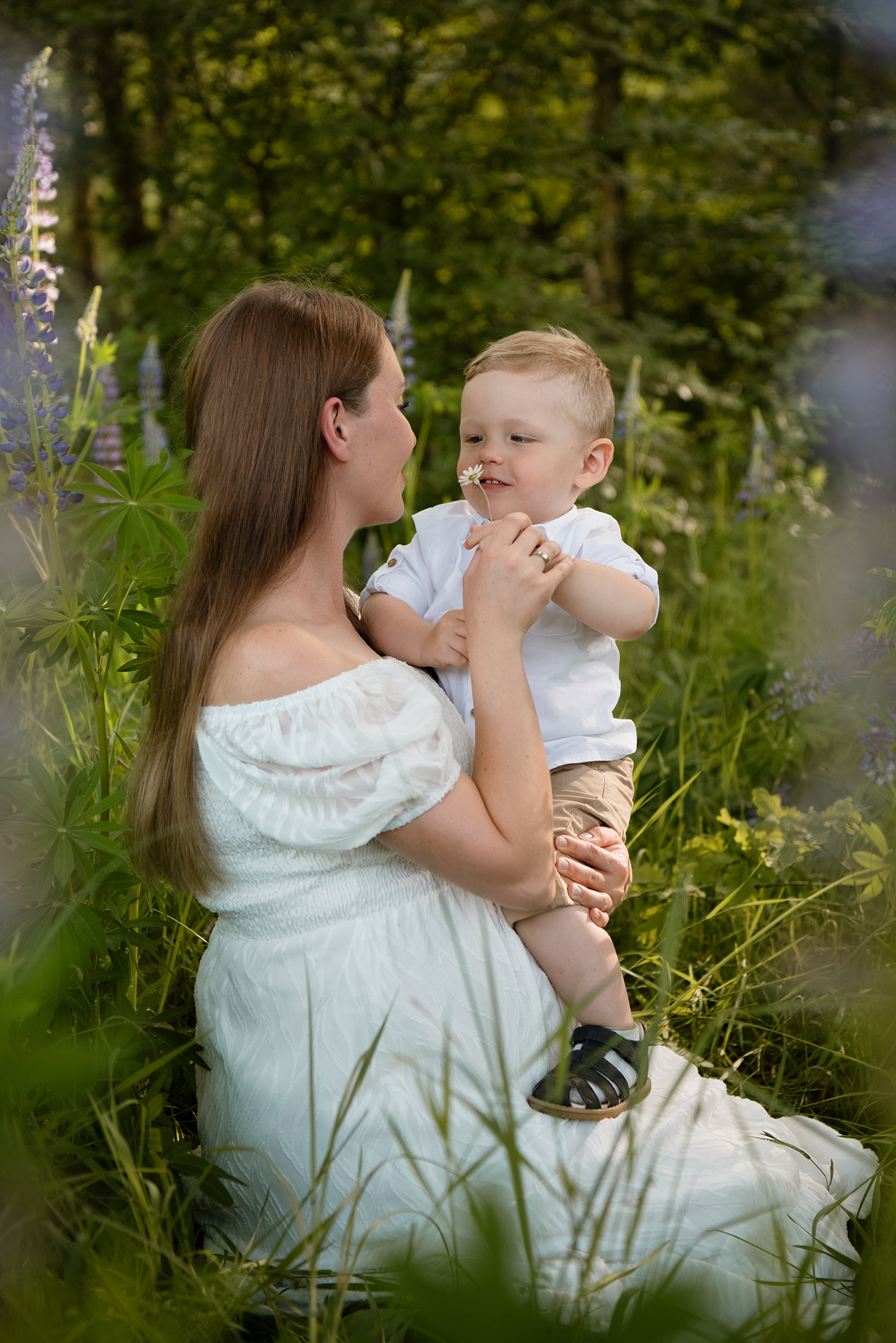 Sesja ciążowa- rodzinna wśród kwiatów i drzew >
